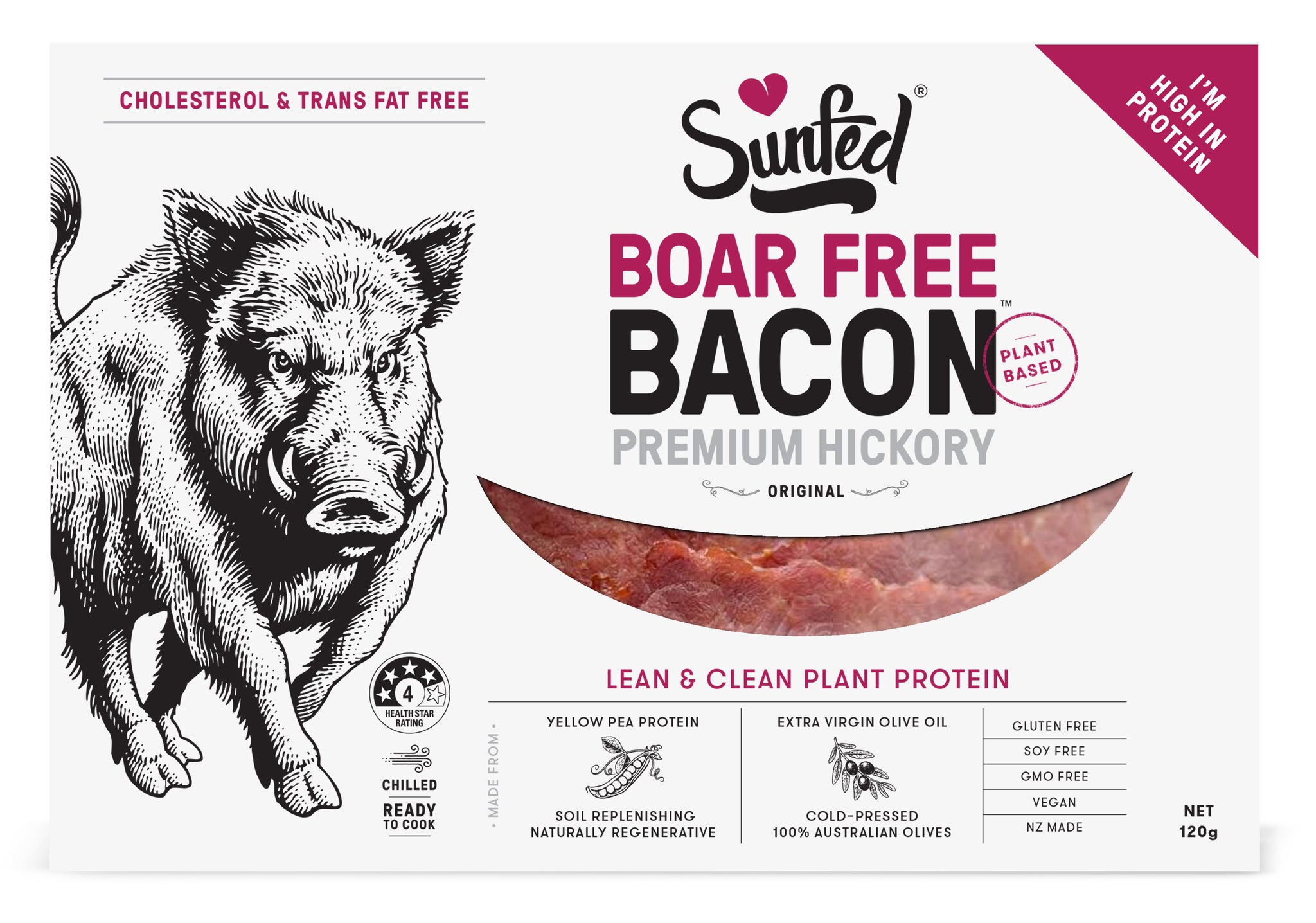 Heat your favourite cooking oil in a pain to medium high heat. Add in Sunfed® Boar Free Bacon™ and fry for 3 minutes, turning occasionally until both sides are light brown and starting to crisp. Season if desired. Bon Appetit.
